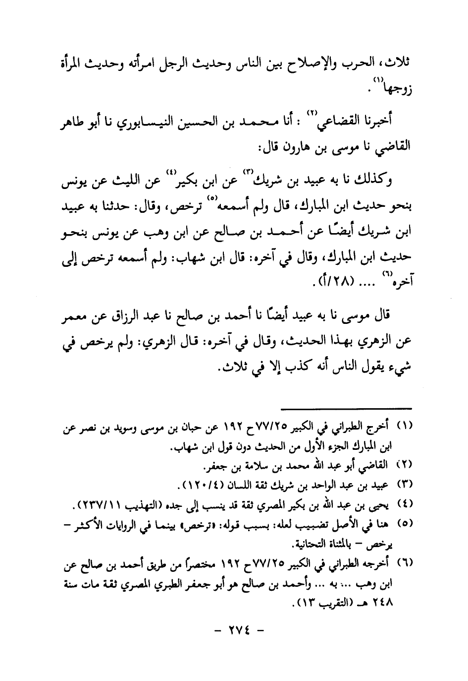 6. أخرجه الطبراني في الكبير 25/77 ح 192 مختصرا من طريق أَحْمَدَ بْنِ صَالِحٍ عَنِ ابْنِ وهب ... به ... وأحمد بن صالح هو أبو جعفر الطبري المصري ثقة مات سنة 248 هـ (التقريب 13) .