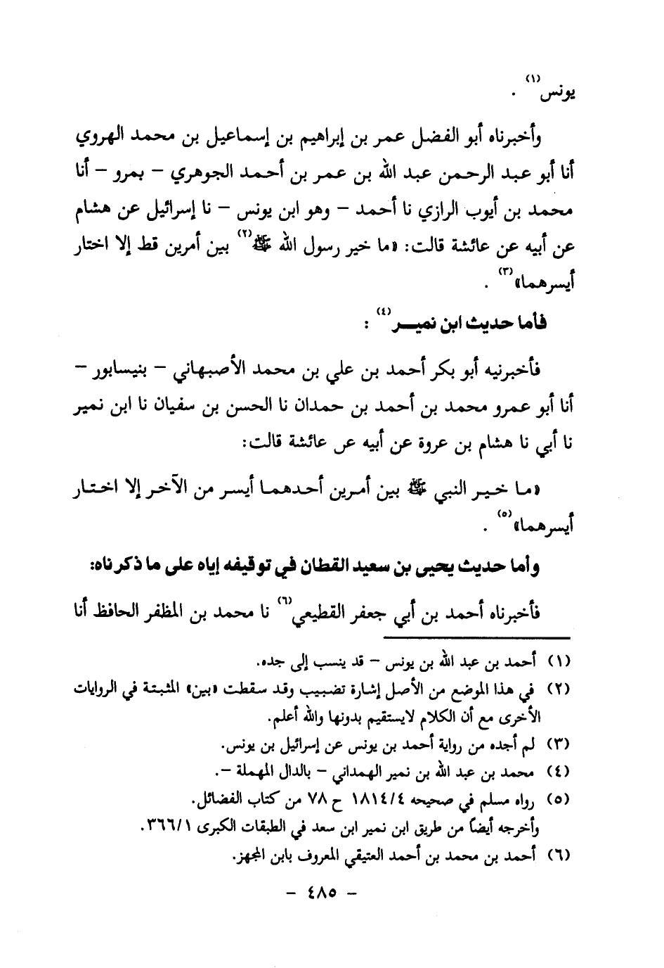 فَأَمَّا حَدِيثُ ابْنِ نُمَيْرٍ4: