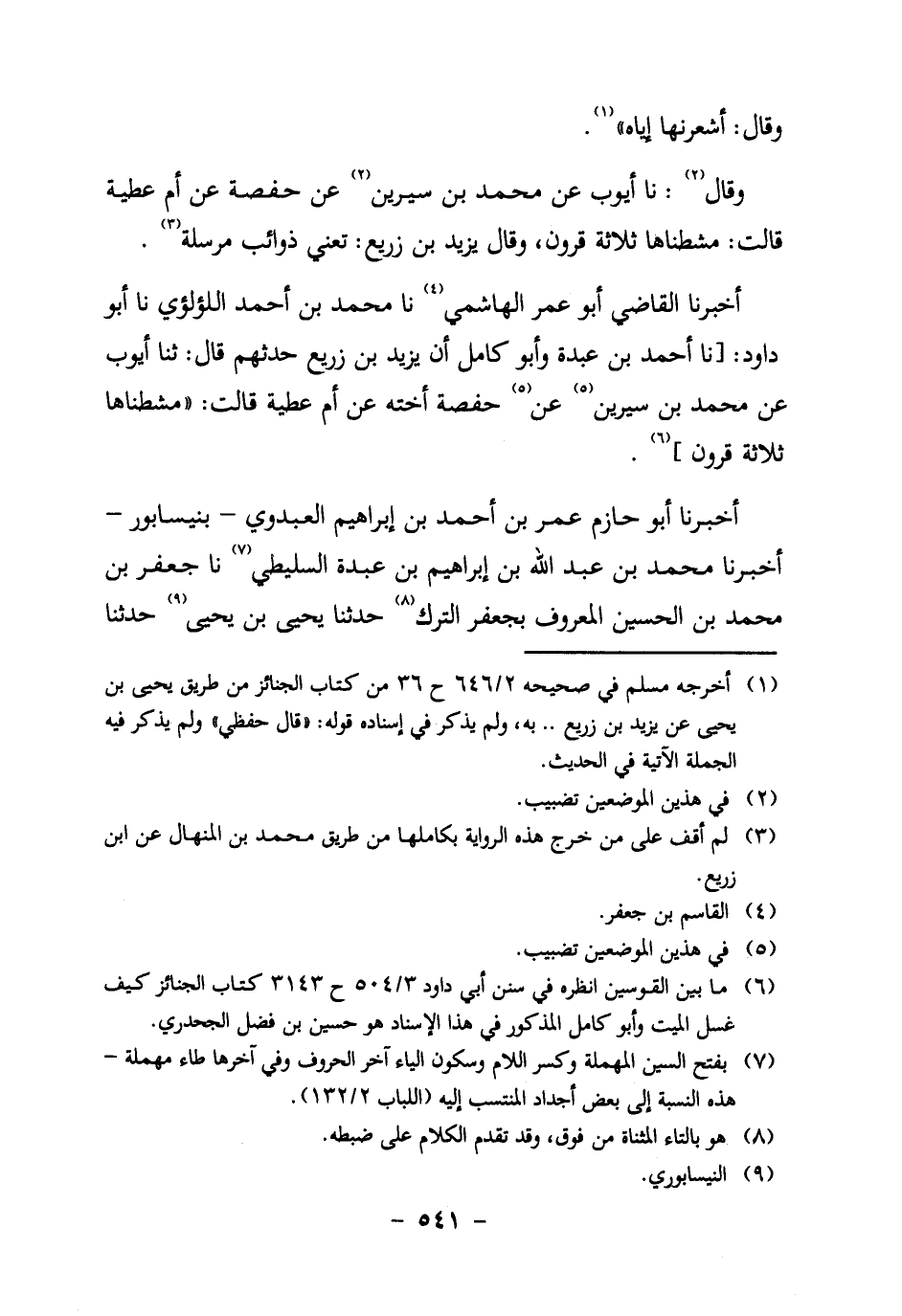 6. ما بين القوسين انظره في سنن أبي داود 3/504 ح 3143 كتاب الجنائز كيف غسل الميت وأبو كامل المذكور في هذا الإسناد هو حسين بن فضل الجحدري.