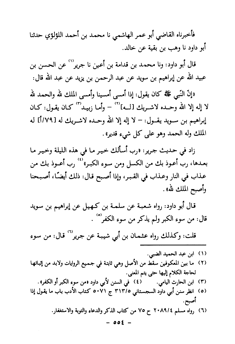 5. انظر سنن أبي داود السجستاني 5/313 ح 5071 كتاب الأدب باب ما يقول إذا أصبح.