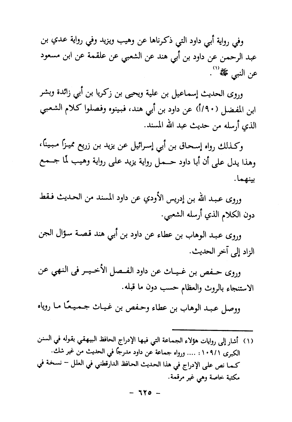 1 أشار إلى روايات هؤلاء الجماعة التي فيها الإدراج الحافظ البيهقي بقوله في السنن الكبرى 1/ 109: ... ورواه جماعة عن داود مدرجاً في الحديث من غير شك.