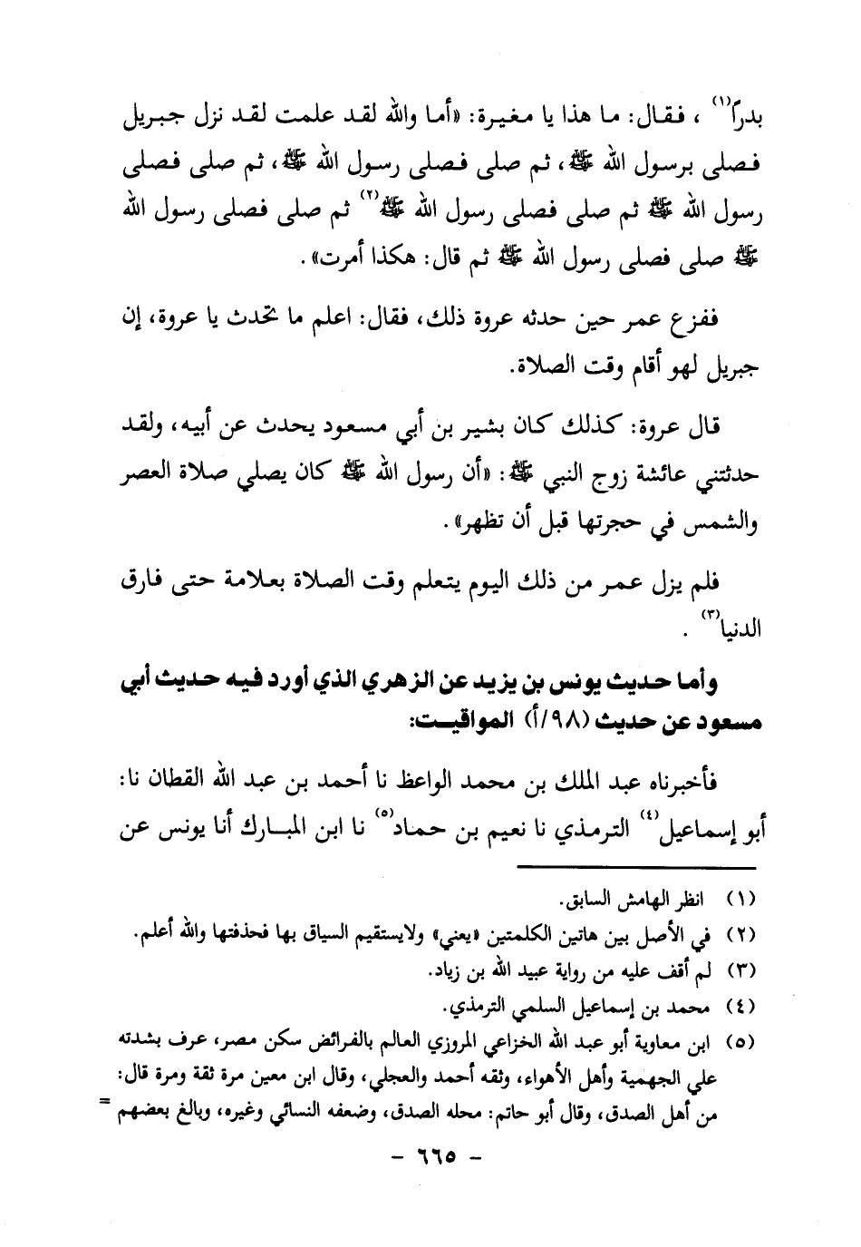 بَدْرًا1، فَقَالَ: "مَا هَذَا يَا مُغِيرَةُ، أَمَا وَاللَّهِ، لَقَدْ عَلِمْتَ، لَقَدْ نَزَلَ جِبْرِيلَ فَصَلَّى بِرَسُولِ الله صَلَّى اللَّهُ عَلَيْهِ وَسَلَّمَ،