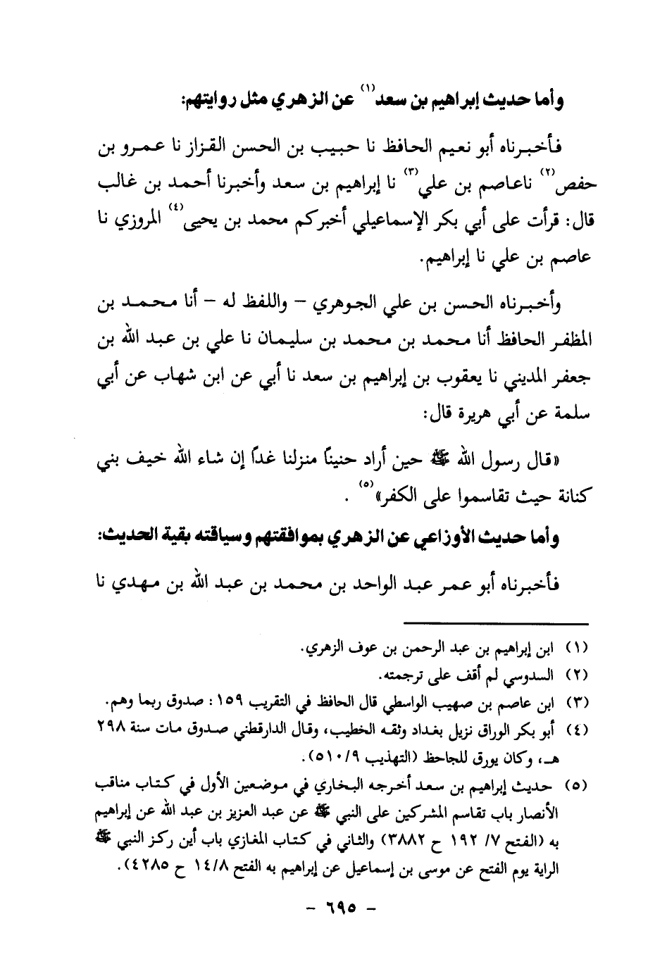 5 حديث إبراهيم بن سعد أخرجه البخاري في موضعين: