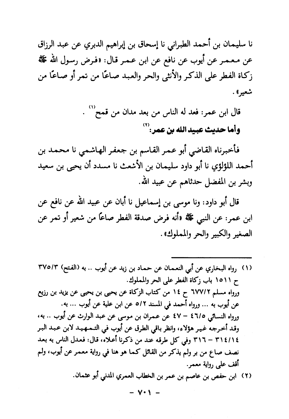 1 رواه البخاري عن أبي النعمان عن حماد بن زيد، عن أيوب ... به. الفتح 3/ 375 ح 1511، باب زكاة الفطر على الحر والمملوك.