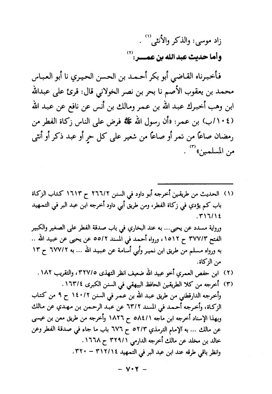 1 الحديث من طريقين أخرجه أبو داود في السنن 2/ 266 ح 1613 كتاب الزكاة، باب كم يؤدي في زكاة الفطر، ومن طريق أبي داود أخرجه ابن عبد البر في التمهيد 14/ 316.