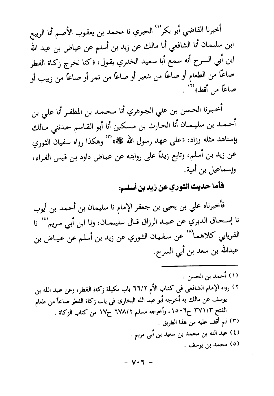 أَخْبَرَنَا الْقَاضِي أَبُو بَكْرٍ1 الْحِيرِيُّ، نا مُحَمَّدُ بْنُ يَعْقُوبَ الأَصَمُّ، أنا الرَّبِيعُ بْنُ سُلَيْمَانَ، أنا الشَّافِعِيُّ، أنا مَالِكٌ عَنْ زَيْدِ