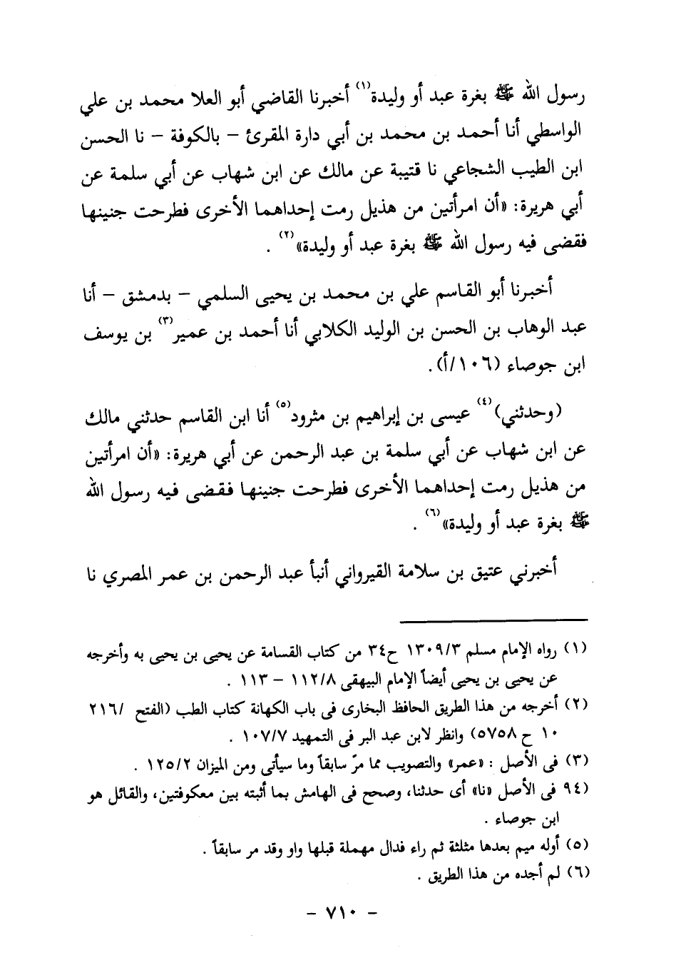 ابن الطَّيِّبِ الشُّجَاعِيُّ، نا قُتَيْبَةُ عَنْ مَالِكٌ، عَنِ ابْنِ شِهَابٍ، عَنْ أَبِي سَلَمَةَ، عَنْ أَبِي هُرَيْرَةَ: "أَنَّ امْرَأَتَيْنِ مِنْ هُذَيْلٍ رَمَتْ إِحْدَاهُمَا الأُخْرَى، فَطَرَحَتْ جَنِينَهَا، فَقَضَى فِيهِ رَسُولُ اللَّهِ صَلَّى اللَّهُ عَلَيْهِ وَسَلَّمَ بِغُرَّةِ عَبْدٍ أَوْ وليدة" 2.