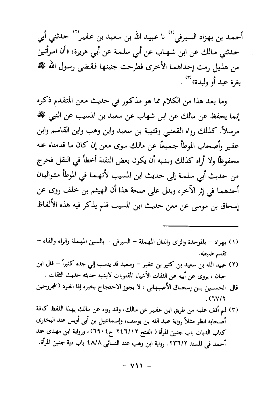 3 لم أقف عليه من طريق ابن عفير عن مالك، وقد رواه عن مالك بهذا اللفظ كافة أصحابه، انظر مثلاً رواية عبد الله بن يوسف، وإسماعيل ابن أبي أويس عند البخاري، كتاب الديات، باب جنين المرأة. الفتح 12/ 246 ح 6904، ورواية ابن مهدي عند أحمد في المسند
