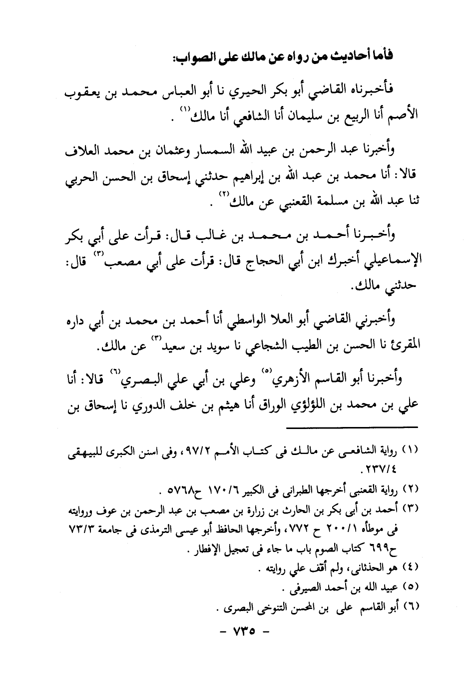 وأخبرنا عَبْدُ الرَّحْمَنِ بْنُ عُبَيْدِ اللَّهِ السِّمْسَارُ، وَعُثْمَانُ بْنُ مُحَمَّدٍ الْعَلافُ، قَالا: أنا مُحَمَّدُ بْنُ عَبْدِ اللَّهِ بْنِ إِبْرَاهِيمَ، حَدَّثَنِي إِسْحَاقُ بن الحسن الحربي، ثنا عَبْدُ اللَّهِ بْنُ مَسْلَمَةَ الْقَعْنَبِيُّ عن مالك2.