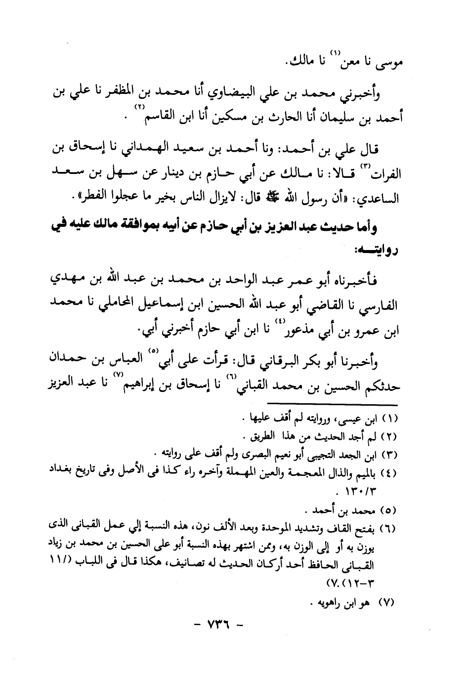 وَأَخْبَرَنِي مُحَمَّدُ بْنُ عَلِيٍّ الْبَيْضَاوِيُّ، أنا مُحَمَّدُ بْنُ الْمُظَفَّرِ، نا عَلِيُّ بْنُ أَحْمَدَ بْنِ سُلَيْمَانَ، أَنَا الْحَارِثُ بْنُ مِسْكِينٍ، أَنَا ابْنُ الْقَاسِمِ2.