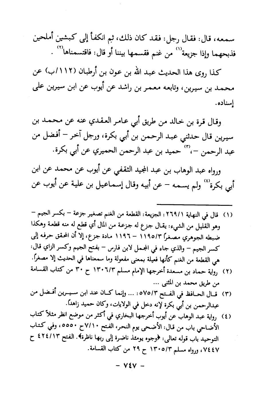 وَرَوَاهُ عَبْدُ الْوَهَّابِ بْنُ عَبْدِ الْمَجِيدِ الثَّقَفِيُّ عَنْ أَيُّوبَ، عَنْ مُحَمَّدٍ، عَنْ ابن أَبِي بَكْرَةَ4 ـ وَلَمْ يسمِّه ـ عَنْ أَبِيهِ. وَقَالَ إِسْمَاعِيلُ بْنُ عُلَيَّةَ عن أيوب، عن