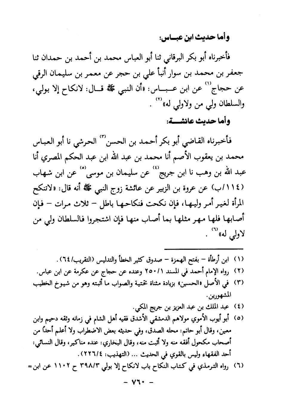 6 رواه الترمذي في كتاب النكاح، باب لا نكاح إلا بولي 3/ 398 ح 1102 عن ابن أبي عمر، عن ابن عيينة، عن ابن جريج ... به.