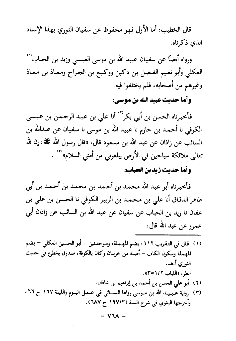 وَرَوَاهُ أَيْضًا عَنْ سُفْيَانَ عُبَيْدُ اللَّهِ بْنُ مُوسَى الْعَبْسِيُّ، وَزَيْدُ بْنُ الْحُبَابِ1 الْعُكْلِيُّ، وَأَبُو نعيم الفضل