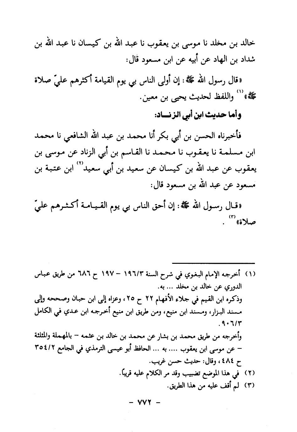 "قَالَ رَسُولُ اللَّهِ صَلَّى اللَّهُ عَلَيْهِ وَسَلَّمَ: إِنَّ أَوْلَى النَّاسِ بِي يَوْمَ الْقِيَامَةِ أَكْثَرُهُمْ عَلَيَّ صَلاةً، صَلَّى اللَّهُ عَلَيْهِ وَسَلَّمَ" 1 وَاللَّفْظُ لِحَدِيثِ يَحْيَى بْنِ مَعِينٍ.