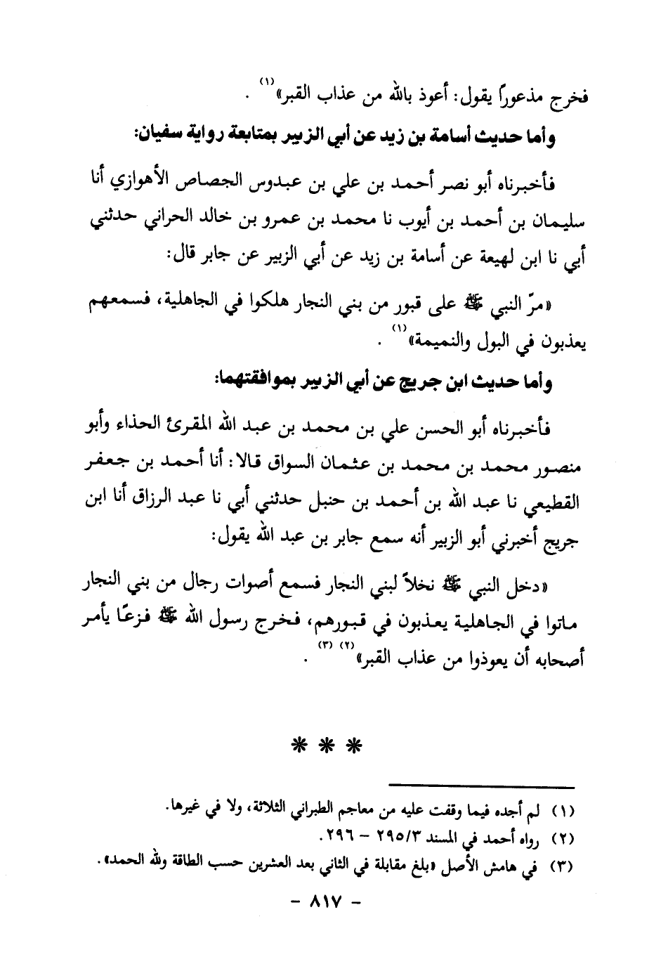 وأما حديث أسامة بن زيد عن أبي الزبير بمتابعة رواية سفيان: