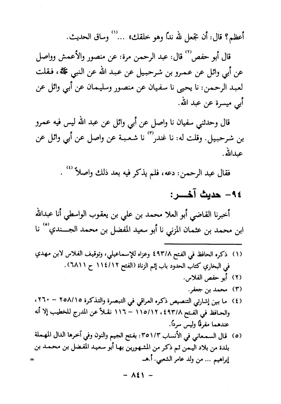قَالَ أَبُو حَفْصٍ:2 قَالَ عَبْدُ الرَّحْمَنِ مَرَّةً: عَنْ مَنْصُورٍ وَالأَعْمَشِ وَوَاصِلٍ، عَنْ أَبِي وَائِلٍ، عَنْ عمرو بن شرحبيل،
