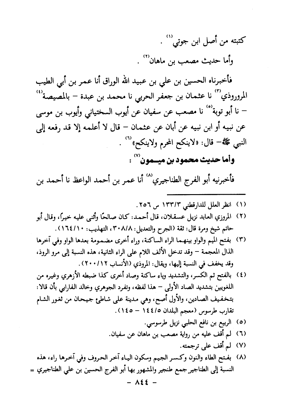 وَأَمَّا حَدِيثُ مُصْعَبِ بْنِ مَاهَانَ2: