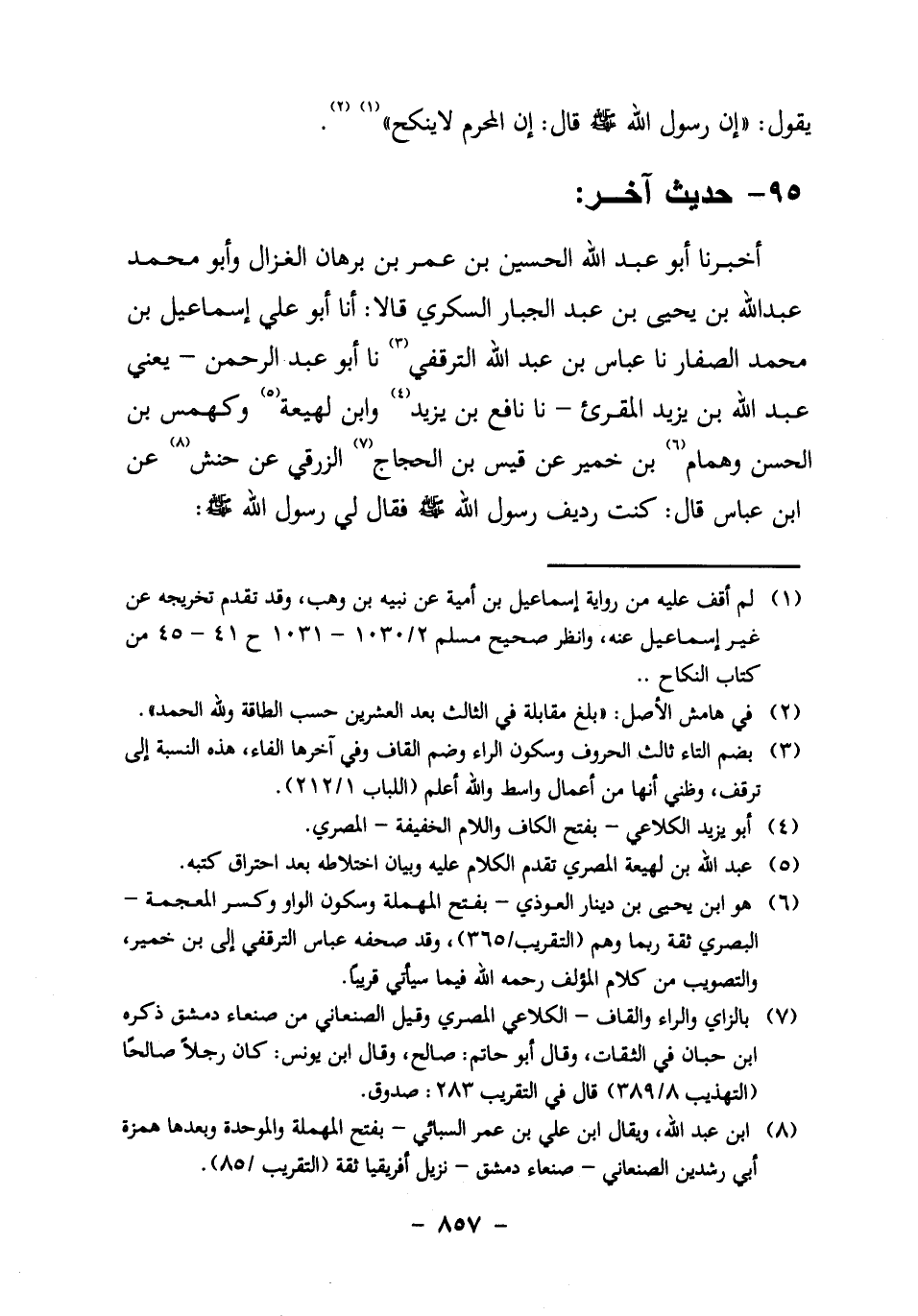 أنا أَبُو عَلِيٍّ إِسْمَاعِيلُ بْنُ مُحَمَّدٍ الصَّفَّارُ، نا عَبَّاسُ بْنُ عَبْدِ اللَّهِ التَّرْقُفِيُّ3، نا أَبُو عَبْدِ الرَّحْمَنِ ـ يَعْنِي عَبْدَ اللَّهِ بْنَ يَزِيدَ الْمُقْرِئَ ـ نا نَافِعُ بْنُ يَزِيدَ4، وَابْنُ لَهِيعَةَ5، وَكَهْمَسُ بْنُ الْحَسَنِ وَهَمَّامُ6 بْنُ خُمَيْرٍ، عَنْ قَيْسِ بْنِ الْحَجَّاجِ الزُّرَقِيِّ7،