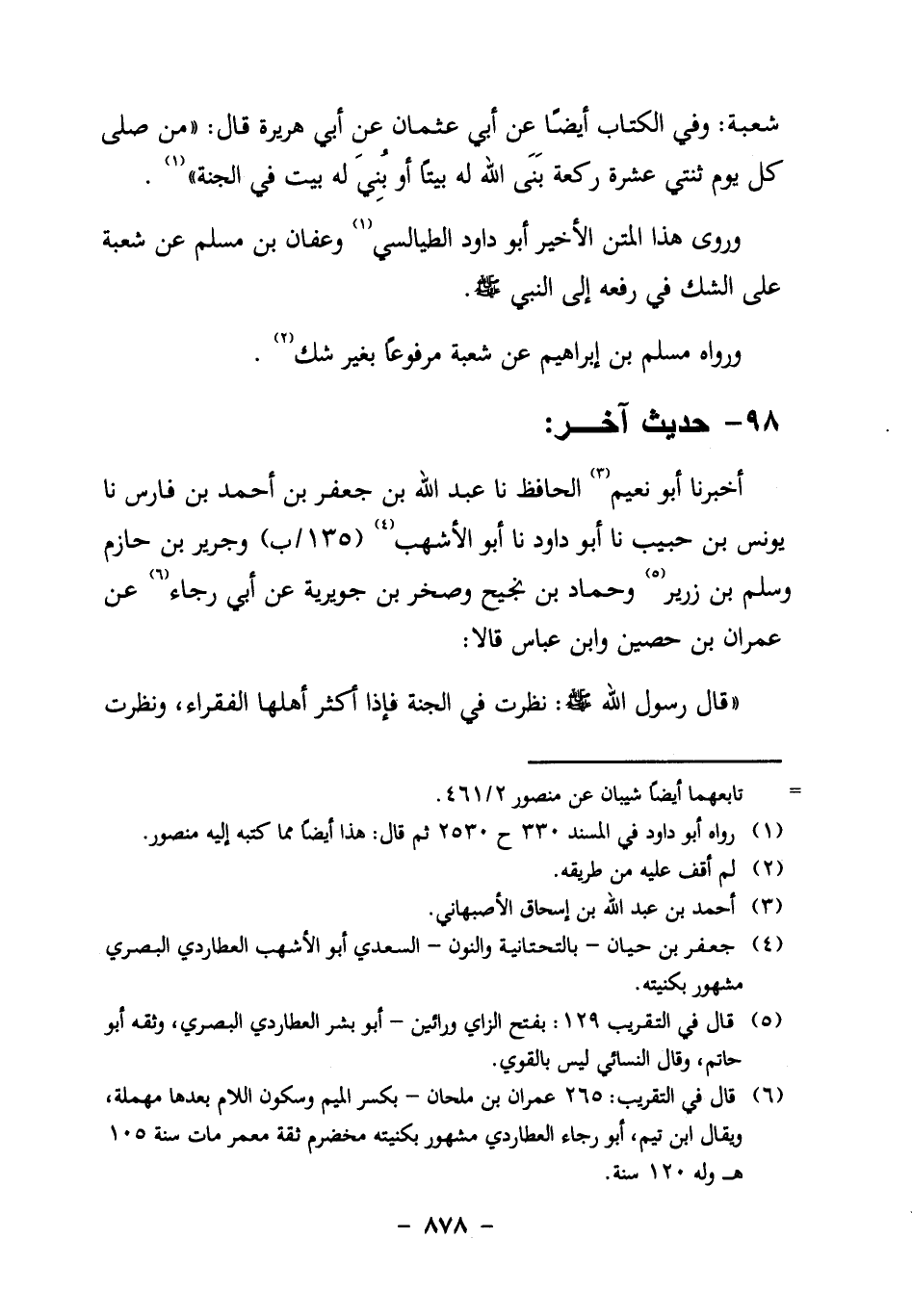 أَخْبَرَنَا أَبُو نُعَيْمٍ3 الْحَافِظُ، نَا عبد الله بن جعفر بن أَحْمَدَ بْنِ فَارِسٍ، نا يُونُسُ بْنُ حَبِيبٍ، نا أَبُو دَاوُدَ، نا أبو الأشهب4 (135/ ب) وَجَرِيرُ بْنُ حَازِمٍ، وَسَلْمُ بْنُ زُرَيْرٍ5، وَحَمَّادُ بْنُ نَجِيحٍ، وَصَخْرُ بْنُ جُوَيْرِيَةَ عَنْ أَبِي رَجَاءٍ6، عن عمران