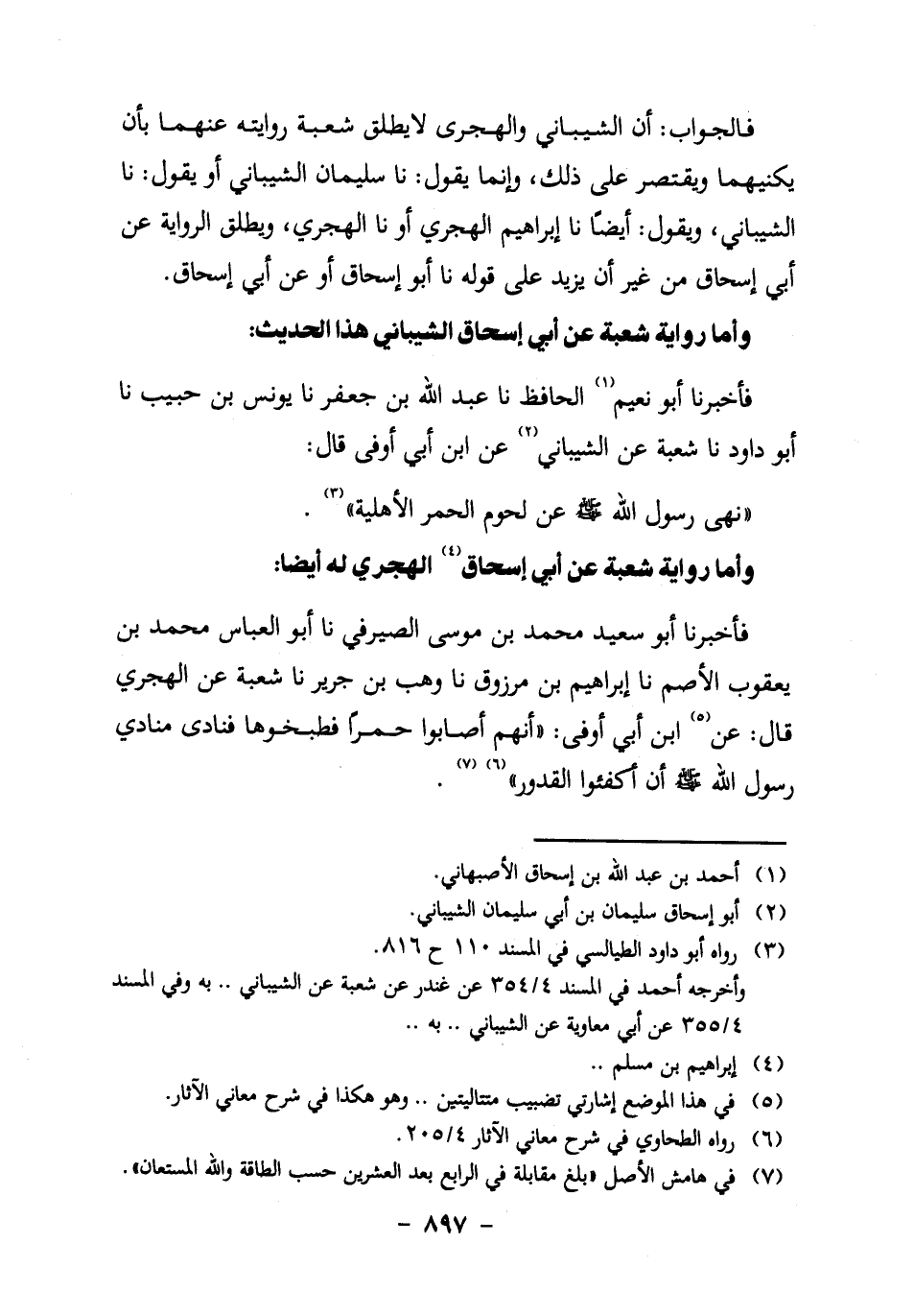 ابْنَ جَرِيرٍ، نا شُعْبَةُ عَنْ الهجري قال: عن5 ابْنُ أَبِي أَوْفَى: "إِنَّهُمْ أَصَابُوا حُمُرًا فَطَبَخُوهَا فَنَادَى مُنَادِي رَسُولِ الله