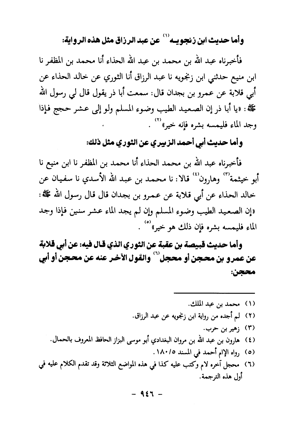 فأخبرناه عبد الله بن محمد بن عَبْدِ اللَّهِ الْحَذَّاءُ، أنا مُحَمَّدُ بْنُ الْمُظَفَّرِ، نا ابْنُ مَنِيعٍ، حَدَّثَنِي ابْنُ زَنْجُوَيْهِ، نا عَبْدُ الرَّزَّاقِ،