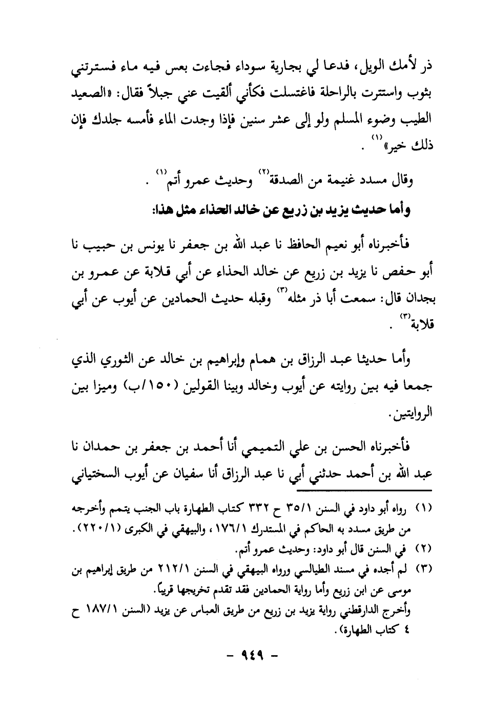 فَأَخْبَرَنَاهُ أَبُو نُعَيْمٍ الْحَافِظُ، نَا عبد الله بن جعفر، نا يُونُسُ بْنُ حَبِيبٍ، نا أَبُو حفص، نا يزيد بن زريع، عَنْ خَالِدٍ الْحَذَّاءِ، عَنْ أَبِي قِلابَةَ، عَنْ عَمْرِو بْنِ بُجْدَانَ قال: سمعت أبا ذَرٍّ مثله3، وقبله حديث الحمادين عن أيوب عن أبي قلابة3.