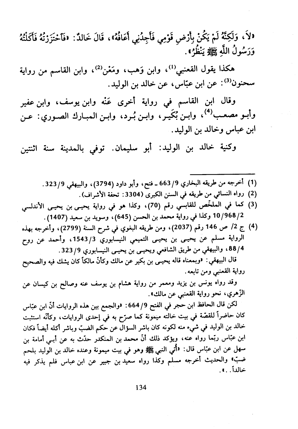 هَكَذَا يَقُولُ الْقَعْنَبِيُّ، وَابْنُ وَهْبٍ، وَمَعْنٌ، وَابْنُ الْقَاسِمِ، مِنْ رِوَايَةِ سَحْنُونٍ: عَنِ ابْنِ عَبَّاسٍ، عَنْ خَالِدِ بْنِ الْوَلِيدِ.