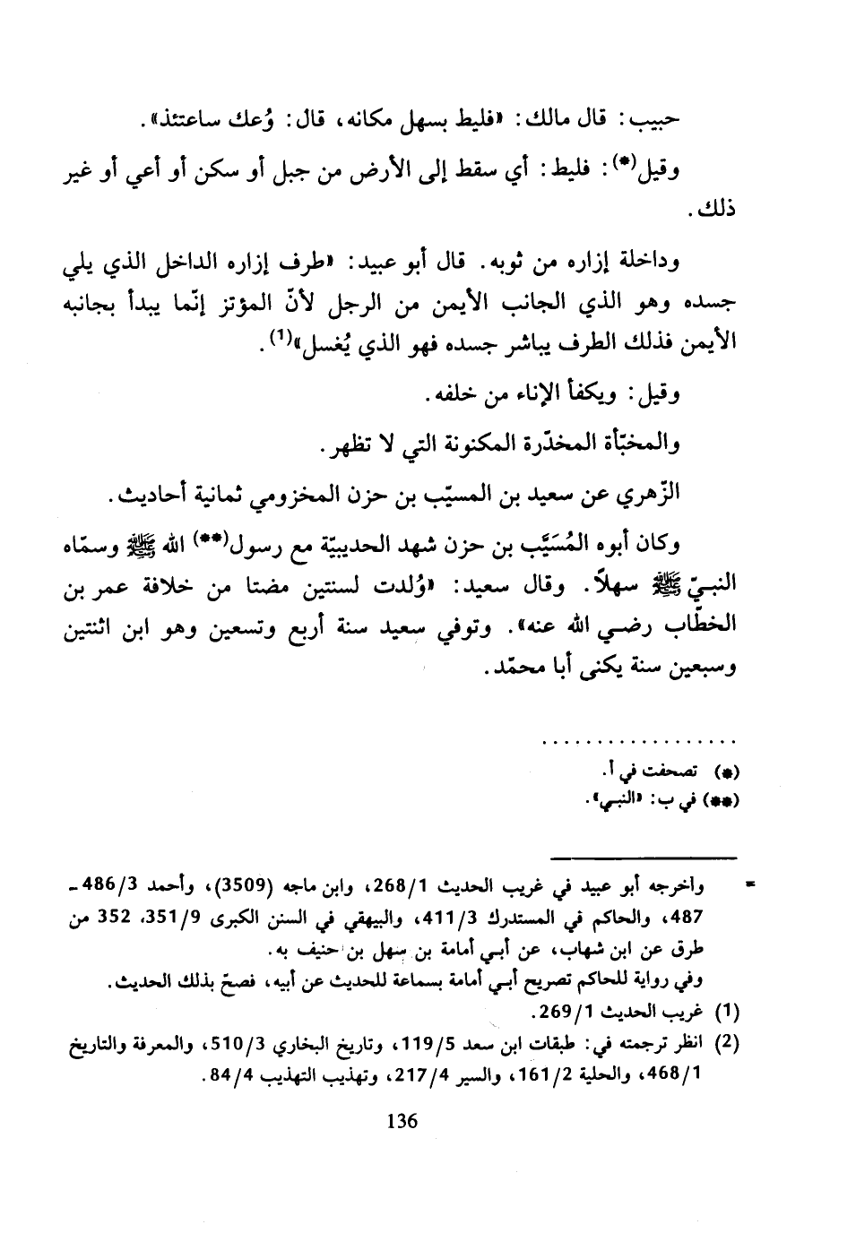 حَبِيبٌ: قَالَ مَالِكٌ: «فَلُبِطَ بِسَهْلٍ مَكَانَهُ».