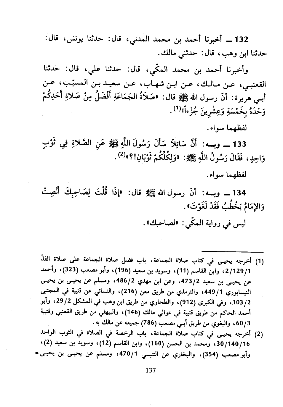 132 - أَخْبَرَنَا أَحْمَدُ بْنُ مُحَمَّدٍ الْمَدَنِيُّ، قَالَ: حَدَّثَنَا يُونُسُ، قَالَ: حَدَّثَنَا ابْنُ وَهْبٍ، قَالَ: حَدَّثَنِي مَالِكٌ.