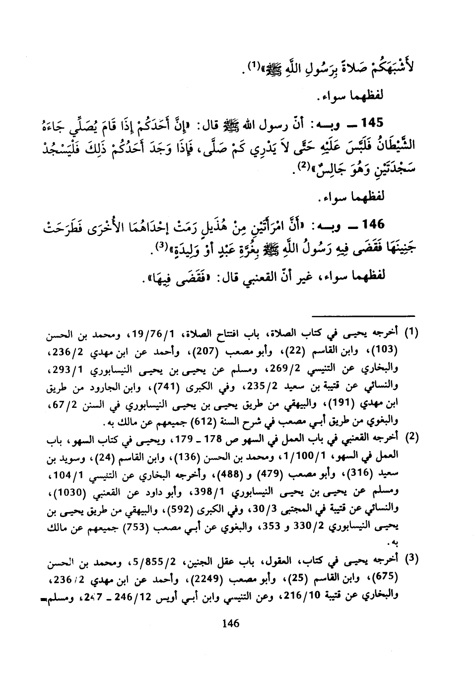 145 - وَبِهِ: أَنَّ رَسُولَ اللَّهِ صَلَّى اللَّهُ عَلَيْهِ وَسَلَّمَ قَالَ: «إِنَّ أَحَدَكُمْ إِذَا قَامَ يُصَلِّي جَاءَهُ الشَّيْطَانُ فَلَبَّسَ عَلَيْهِ حَتَّى لا يَدْرِي كَمْ صَلَّى، فَإِذَا وَجَدَ أَحَدُكُمْ ذَلِكَ فَلْيَسْجُدْ سَجْدَتَيْنِ وَهُوَ جَالِسٌ».