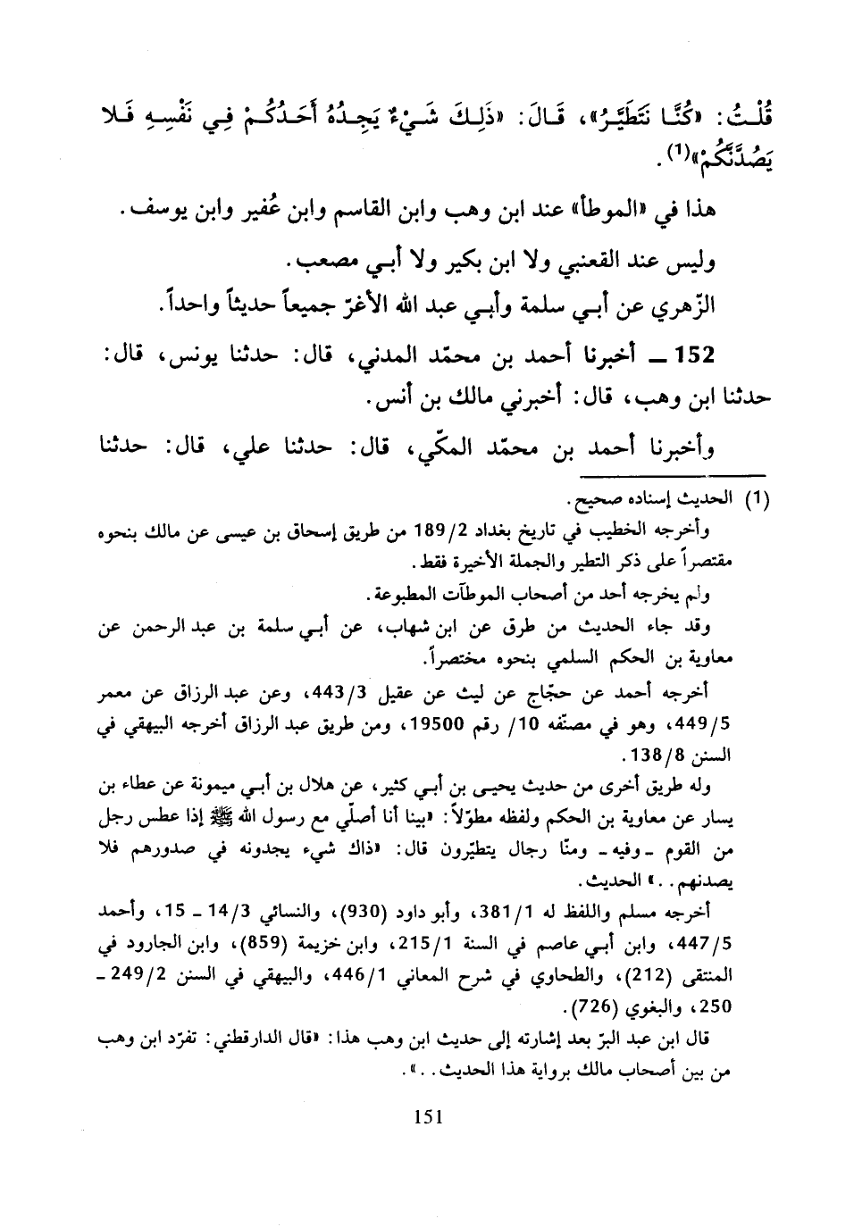 152 - أَخْبَرَنَا أَحْمَدُ بْنُ مُحَمَّدٍ الْمَدَنِيُّ، قَالَ: حَدَّثَنَا يُونُسُ، قَالَ: حَدَّثَنَا ابْنُ وَهْبٍ، قَالَ: أَخْبَرَنِي مَالِكُ بْنُ أَنَسٍ.