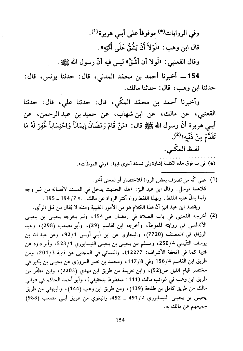 154 - أَخْبَرَنَا أَحْمَدُ بْنُ مُحَمَّدٍ الْمَدَنِيُّ، قَالَ: حَدَّثَنَا يُونُسُ، قَالَ: حَدَّثَنَا ابْنُ وَهْبٍ، قَالَ: حَدَّثَنَا مَالِكٌ.