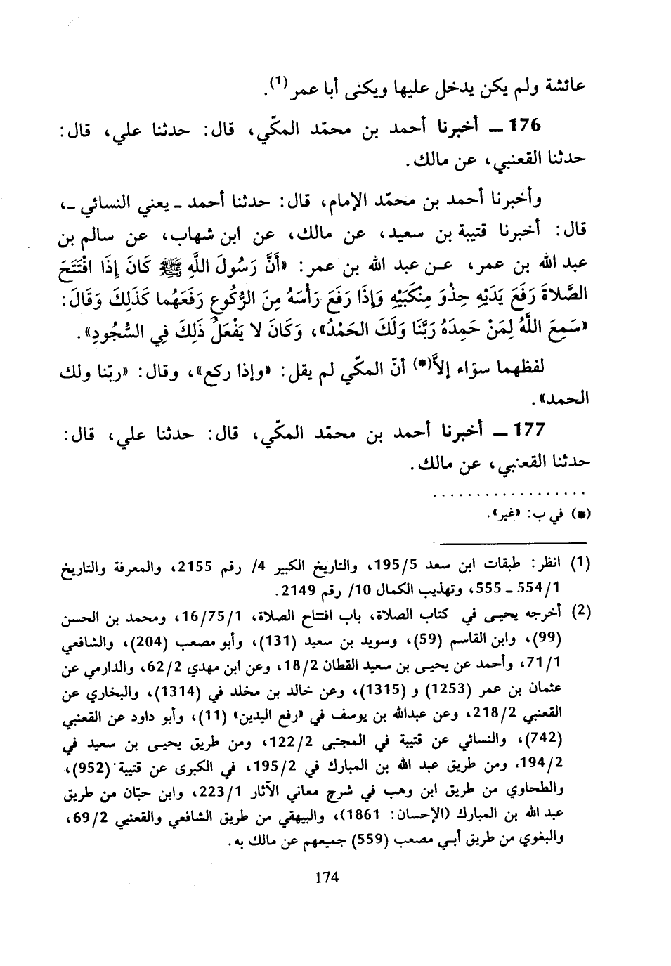 176 - أَخْبَرَنَا أَحْمَدُ بْنُ مُحَمَّدٍ الْمَكِّيُّ، قَالَ: حَدَّثَنَا عَلِيٌّ، قَالَ: حَدَّثَنَا الْقَعْنَبِيُّ، عَنْ مَالِكٍ.