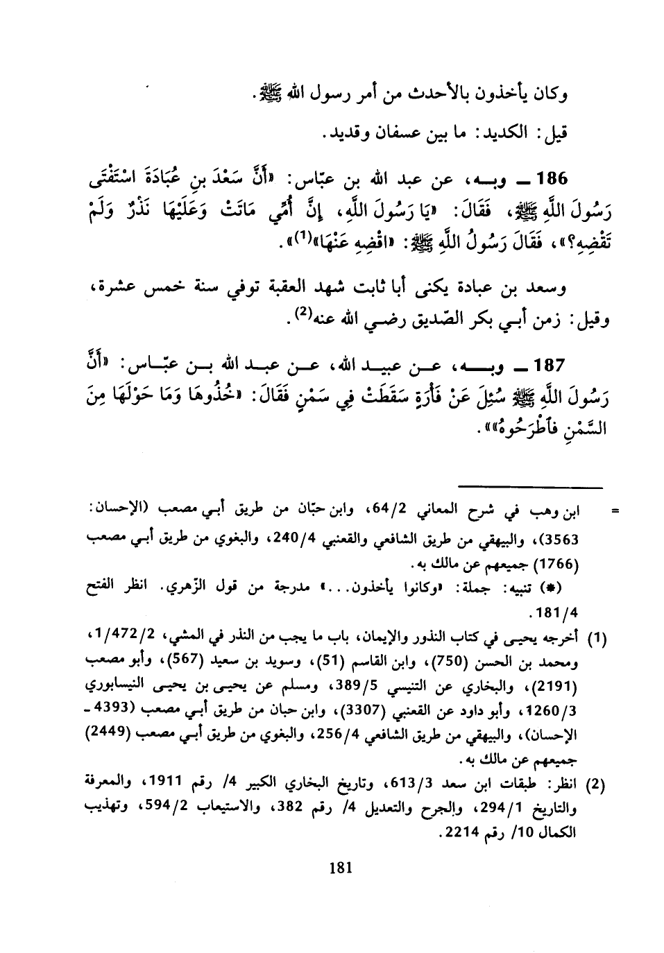 186 - وَبِهِ، عَنْ عَبْدِ اللَّهِ بْنِ عَبَّاسٍ أَنَّ سَعْدَ بْنَ عُبَادَةَ اسْتَفْتَى رَسُولَ اللَّهِ صَلَّى اللَّهُ عَلَيْهِ وَسَلَّمَ، فَقَالَ: «يَا رَسُولَ اللَّهِ، إِنَّ أُمِّي مَاتَتْ وَعَلَيْهَا نَذْرٌ وَلَمْ تَقْضِهِ؟» فَقَالَ رَسُولُ اللَّهِ صَلَّى اللَّهُ عَلَيْهِ وَسَلَّمَ: اقْضِهِ عَنْهَا ".