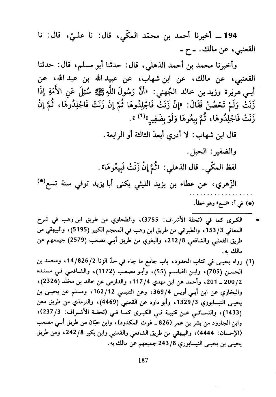 194 - أَخْبَرَنَا أَحْمَدُ بْنُ مُحَمَّدٍ الْمَكِّيُّ، قَالَ: نا عَلِيٌّ، قَالَ: نا الْقَعْنَبِيُّ، عَنْ مَالِكٍ.