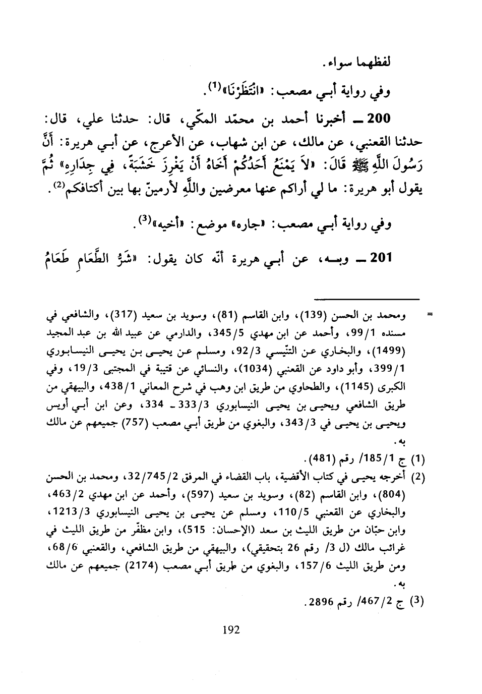 وَفِي رِوَايَةِ أَبِي مُصْعَبٍ: «جَارُهُ» مَوْضِعُ: «أَخِيهِ»