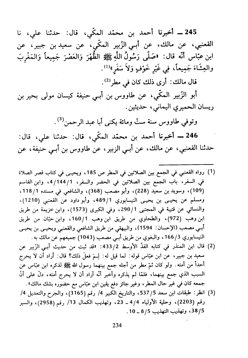 246 - أَخْبَرَنَا أَحْمَدُ بْنُ مُحَمَّدٍ الْمَكِّيُّ، قَالَ: حَدَّثَنَا عَلِيٌّ، قَالَ: حَدَّثَنَا الْقَعْنَبِيُّ، عَنْ مَالِكٍ، عَنْ أَبِي الزُّبَيْرِ، عَنْ طَاوُسِ، عَنْ