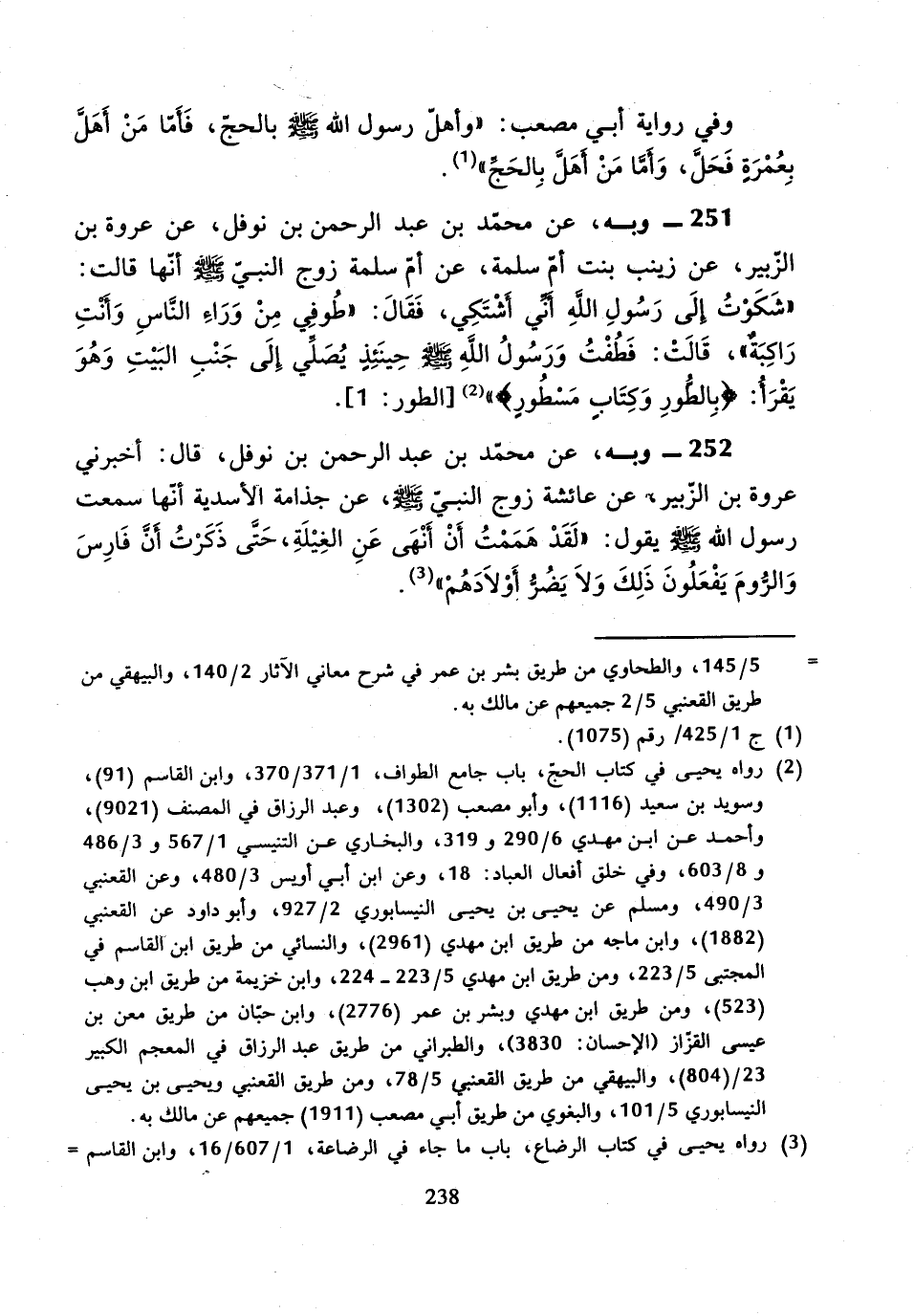 وَفِي رِوَايَةِ أَبِي مُصْعَبٍ: «وَأَهَلَّ رَسُولُ اللَّهِ صَلَّى اللَّهُ عَلَيْهِ وَسَلَّمَ بِالْحَجِّ، فَأَمَّا مَنْ أَهَلَّ بِعُمْرَةٍ فَحَلَّ، وَأَمَّا مَنْ أَهَلَّ بِالْحَجِّ»