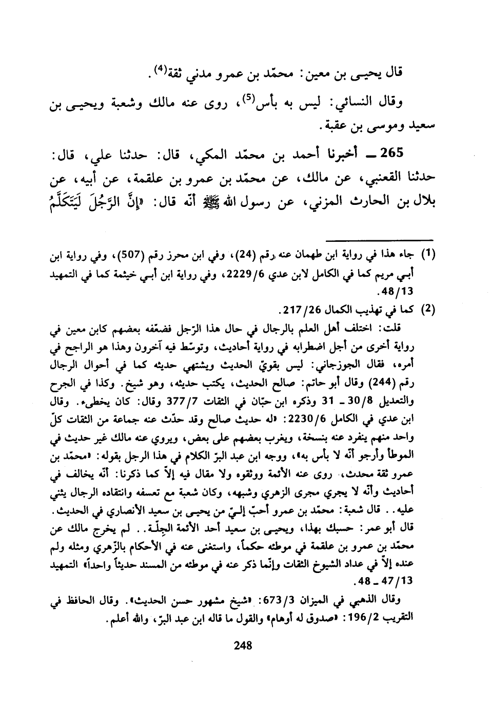 قَالَ يَحْيَى بْنُ مَعِينٍ: مُحَمَّدُ بْنُ عَمْرٍو مَدَنِيٌّ ثِقَةٌ.