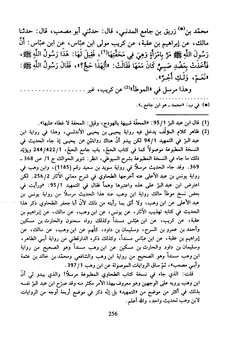 مُحَمَّدُ بْنُ زُرَيْقِ بْنِ جَامِعٍ الْمَدَنِيُّ، قَالَ: حَدَّثَنَا أَبُو مُصْعَبٍ، قَالَ: حَدَّثَنَا مَالِكٌ، عَنْ إِبْرَاهِيمَ بْنِ عُقْبَةَ، عَنْ كُرَيْبٍ مَوْلَى ابْنِ عَبَّاسٍ، عَنِ ابْنِ عَبَّاسٍ، أَنَّ رَسُولَ اللَّهِ صَلَّى اللَّهُ عَلَيْهِ وَسَلَّمَ " مَرَّ بِامْرَأَةٍ وَهِيَ فِي مِحَفَّتِهَا، فَقِيلَ لَهَا: هَذَا رَسُولُ اللَّهِ صَلَّى اللَّهِ عَلَيْهِ وَسَلَّمَ.