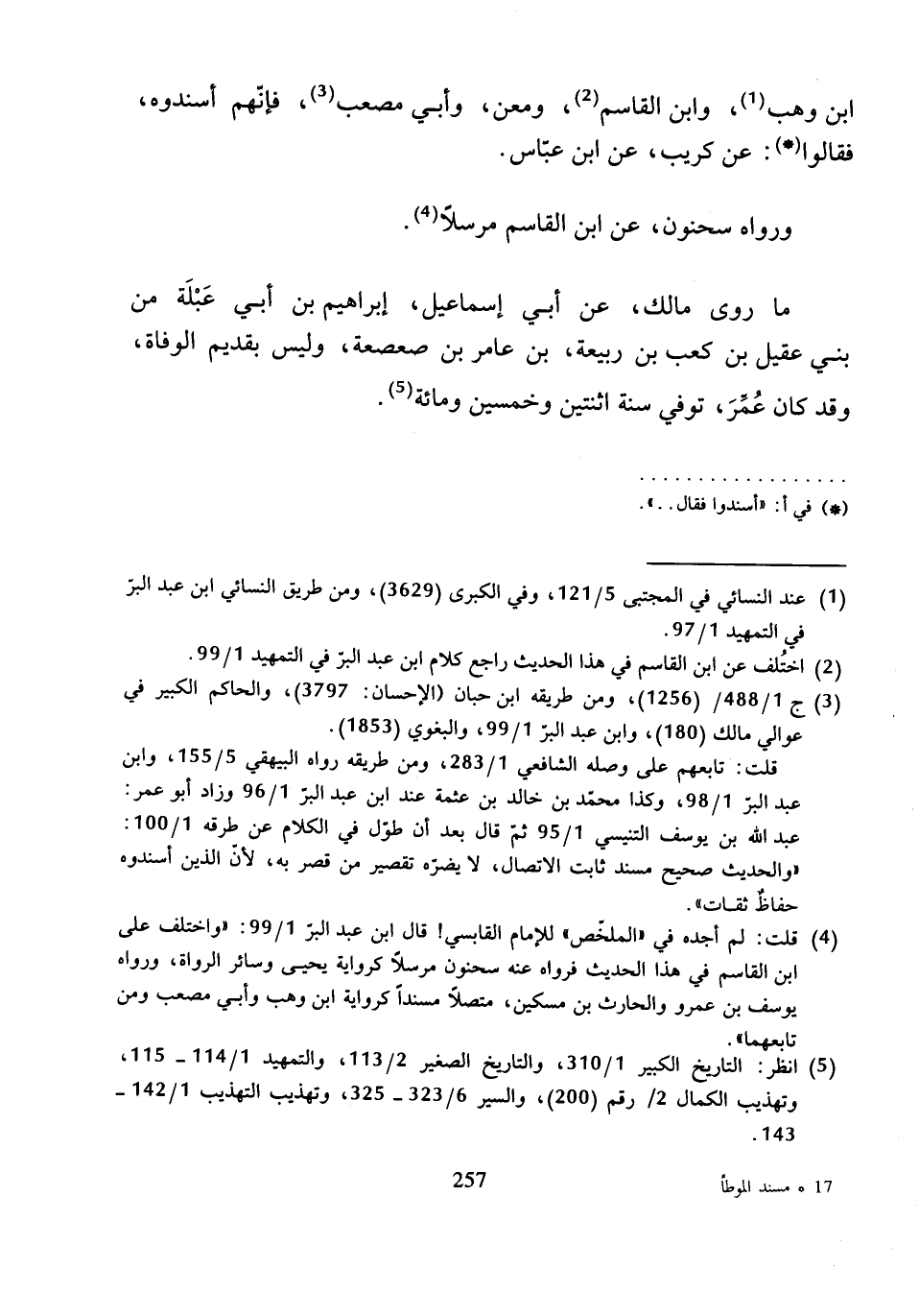ابْنِ وَهْبٍ، وَابْنِ الْقَاسِمِ، وَمَعْنٍ، وَأَبِي مُصْعَبٍ، فَإِنَّهُمْ أَسْنَدُوهُ، فَقَالُوا: عَنْ كُرَيْبٍ، عَنِ ابْنِ عَبَّاسٍ.