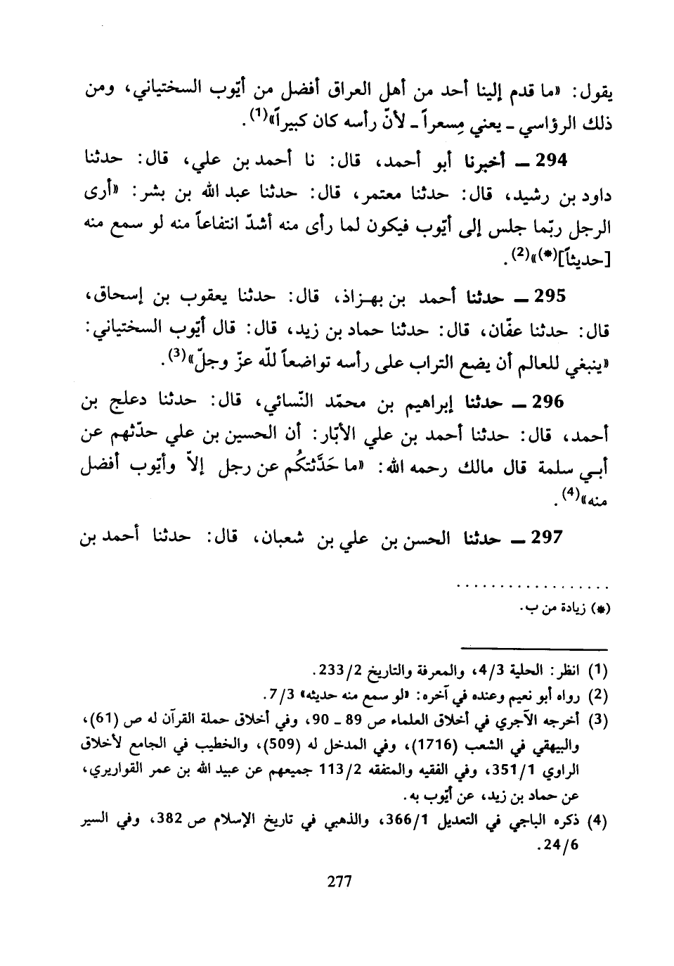 296 - حَدَّثَنَا إِبْرَاهِيمُ بْنُ مُحَمَّدٍ النَّسَائِيُّ، قَالَ: حَدَّثَنَا دَعْلَجُ بْنُ أَحْمَدَ، قَالَ: حَدَّثَنَا أَحْمَدُ بْنُ عَلِيٍّ الأَبَّارُ، أَنَّ الْحُسَيْنَ بْنَ عَلِيٍّ حَدَّثَهُمْ عَنْ أَبِي سَلَمَةَ، قَالَ مَالِكٌ رَحِمَهُ اللَّهُ «مَا حَدَّثْتُكُمْ عَنْ رَجُلٍ إِلا وَأَيُّوبُ أَفْضَلُ مِنْهُ».