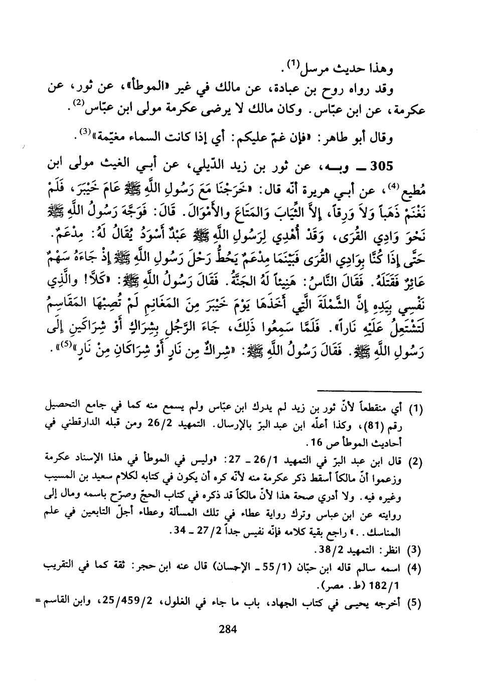 305 - وَبِهِ، عَنْ ثَوْرِ بْنِ زَيْدٍ الدِّيلِيِّ، عَنْ أَبِي الْغَيْثِ مَوْلَى ابْنِ مُطِيعٍ عَنْ أَبِي هُرَيْرَةَ، أَنَّهُ قَالَ: " خَرَجْنَا مَعَ رَسُولِ اللَّهِ صَلَّى اللَّهُ عَلَيْهِ وَسَلَّمَ عَامَ خَيْبَرَ، فَلَمْ نَغْنَمْ ذَهَبًا وَلا وَرِقًا، إِلا الثِّيَابَ وَالْمَتَاعَ وَالأَمْوَالَ، قَالَ: فَوَجَّهَ رَسُولُ اللَّهِ صَلَّى اللَّهُ عَلَيْهِ وَسَلَّمَ نَحْوَ وَادِي الْقُرَى، وَقَدْ أُهْدِيَ لِرَسُولِ اللَّهِ صَلَّى اللَّهُ عَلَيْهِ وَسَلَّمَ عَبْدٌ أَسْوَدٌ يُقَالُ لَهُ: مِدْعَمٌ.