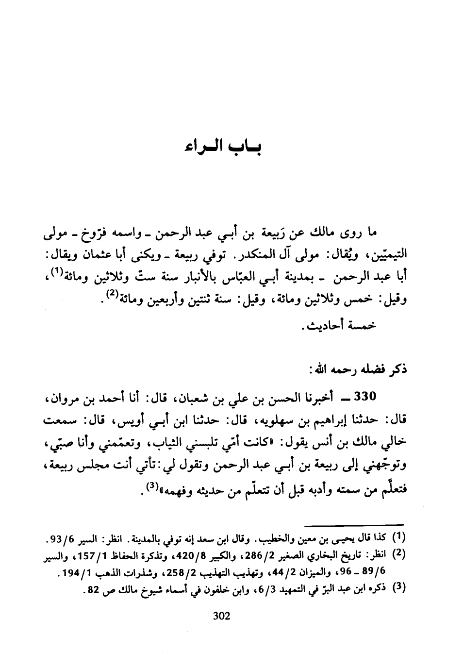 مَا رَوَى مَالِكٌ عَنْ رَبِيعَةَ بْنِ أَبِي عَبْدِ الرَّحْمَنِ