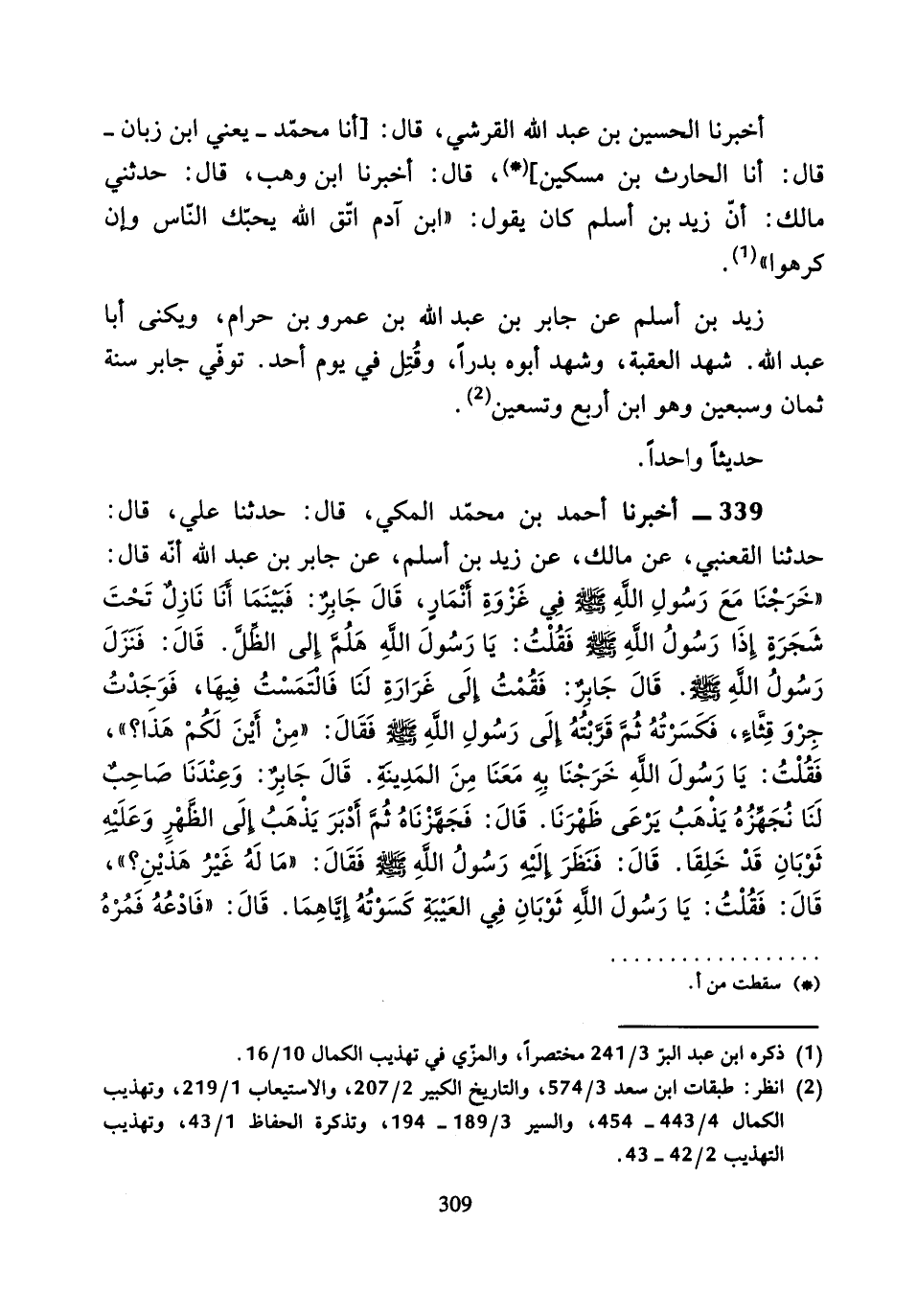 زَيْدُ بْنُ أَسْلَمَ، عَنْ جَابِرِ بْنِ عَبْدِ اللَّهِ بْنِ عَمْرِو بْنِ حَرَامٍ، وَيُكْنَى أَبَا عَبْدِ اللَّهِ.