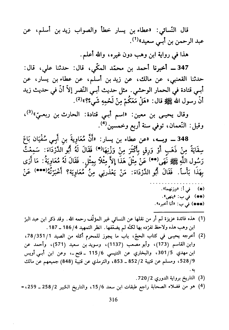 348 - وَبِهِ، عَنْ عَطَاءِ بْنِ يَسَارٍ أَنَّ مُعَاوِيةَ بْنَ أَبِي سُفْيَانَ بَاعَ سِقَايَةً مِنْ ذَهَبٍ أَوْ وَرِقٍ بِأَكْثَرَ مِنْ وَزْنِهَا، فَقَالَ لَهُ أَبُو الدَّرْدَاءَ: سَمِعْتُ رَسُولَ اللَّهِ صَلَّى اللَّهُ عَلَيْهِ وَسَلَّمَ نَهَى عَنْ مِثْلِ هَذَا إِلا مِثْلا بِمِثْلٍ.