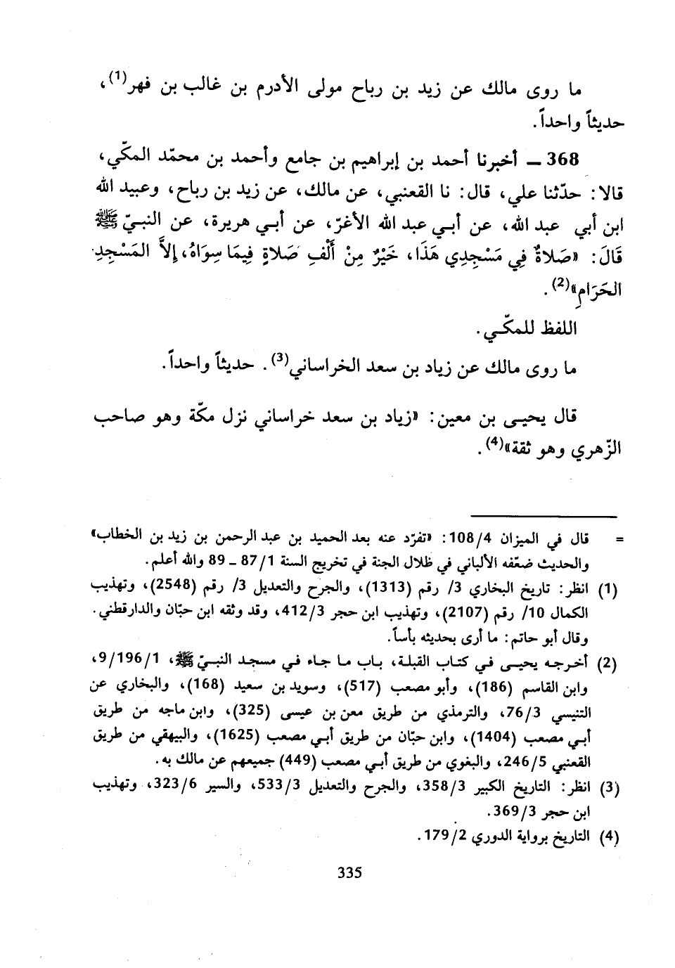 368 - أَخْبَرَنَا أَحْمَدُ بْنُ إِبْرَاهِيمَ بْنِ جَامِعٍ، وَأَحْمَدُ بْنُ مُحَمَّدٍ الْمَكِّيُّ قَالا: حَدَّثَنَا عَلِيٌّ، قَالَ: نَا الْقَعْنَبِيُّ، عَنْ مَالِكٍ، عَنْ زَيْدِ بْنِ رَبَاحٍ، وَعُبَيْدِ اللَّهِ بْنِ أَبِي عَبْدِ اللَّهِ، عَنْ أَبِي عَبْدِ اللَّهِ الأَغَرِّ، عَنْ أَبِي هُرَيْرَةَ، عَنِ النَّبِيِّ صَلَّى اللَّهُ عَلَيْهِ وَسَلَّمَ قَالَ: «صَلاةٌ فِي مَسْجِدِي هَذَا، خَيْرٌ مِنْ أَلْفِ صَلاةٍ فِيمَا سِوَاهُ، إِلا الْمَسْجِدَ الْحَرَامَ».