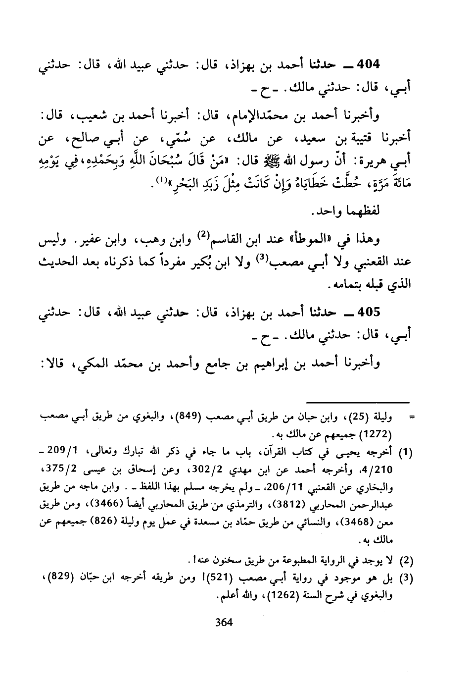 405 - حَدَّثَنَا أَحْمَدُ بْنُ بُهْزَاذَ، قَالَ: حَدَّثَنِي عُبَيْدُ اللَّهِ، قَالَ: حَدَّثَنِي أَبِي قَالَ: حَدَّثَنِي مَالِكٌ.
