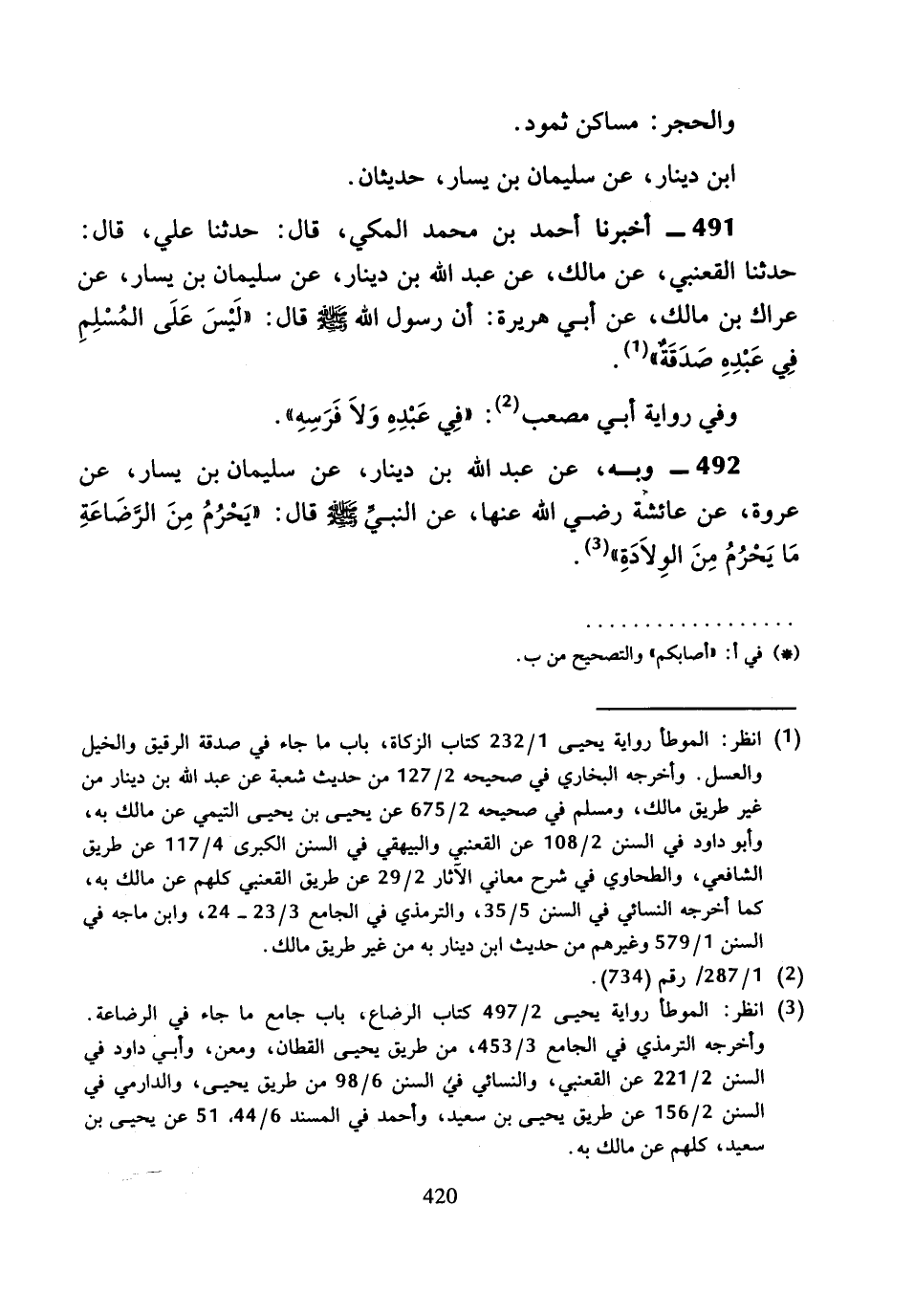 491 - أَخْبَرَنَا أَحْمَدُ بْنُ مُحَمَّدٍ الْمَكِّيُّ، قَالَ: حَدَّثَنَا عَلِيٌّ، قَالَ: حَدَّثَنَا الْقَعْنَبِيُّ، عَنْ مَالِكٍ، عَنْ عَبْدِ اللَّهِ بْنِ دِينَارٍ، عَنْ سُلَيْمَانَ بْنِ يَسَارٍ، عَنْ عِرَاكِ بْنِ مَالِكٍ، عَنْ أَبِي هُرَيْرَةَ، أَنَّ رَسُولَ اللَّهِ صَلَّى اللَّهُ عَلَيْهِ وَسَلَّمَ قَالَ: «لَيْسَ عَلَى الْمُسْلِمِ فِي عَبْدِهِ صَدَقَةٌ».