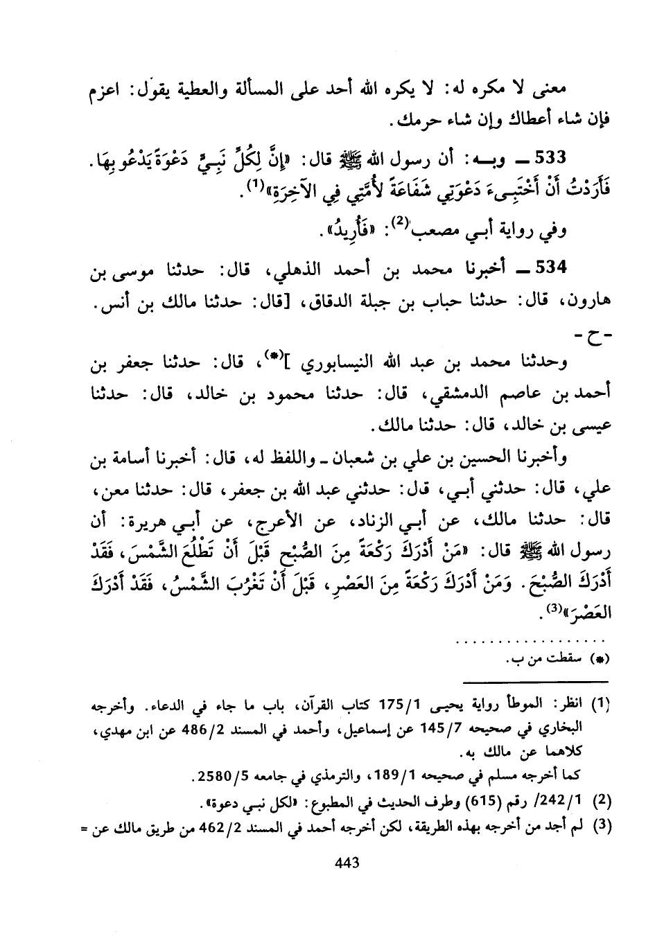 534 - أَخْبَرَنَا مُحَمَّدُ بْنُ أَحْمَدَ الذُّهْلِيُّ، قَالَ: حَدَّثَنَا مُوسَى بْنُ هَارُونَ، قَالَ: حَدَّثَنَا حُبَابُ بْنُ جَبَلَةَ الدَّقَّاقُ، قَالَ: حَدَّثَنَا مَالِكُ بْنُ أَنَسٍ.